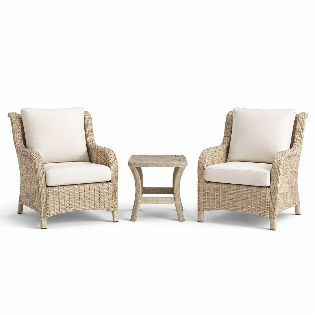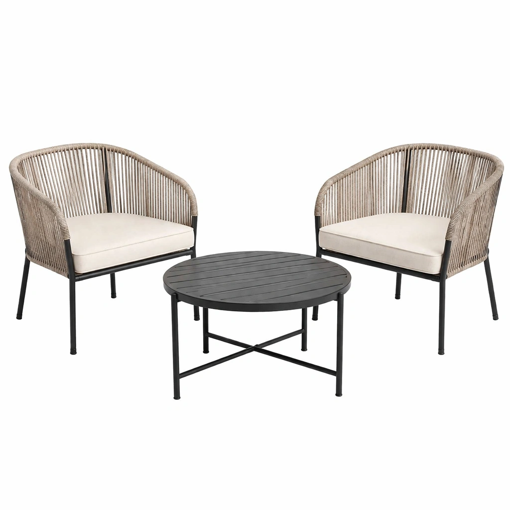 Conjunto de jardín compacto de 3 piezas de ratán sintético y acero beige negro