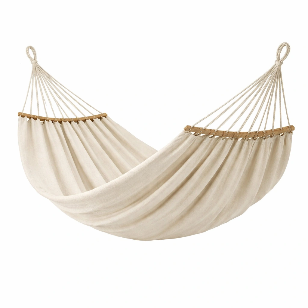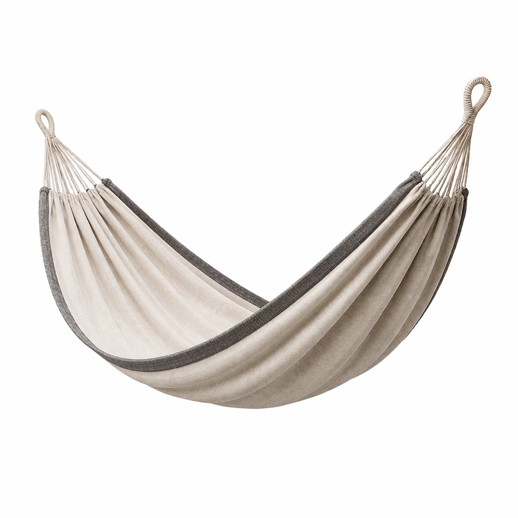 Hamaca de lona de algodón a rayas beige y gris 210x150 cm